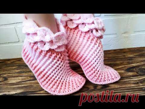 СЛЕДКИ - ТАПОЧКИ КРЮЧКОМ. ПОДРОБНЫЙ МАСТЕР-КЛАСС Super Easy Slippers Tutorial For Beginners 1 ЧАСТЬ