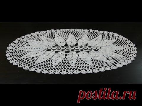 ОЧЕНЬ ПРОСТАЯ И КРАСИВАЯ ОВАЛЬНАЯ САЛФЕТКА С ЛИСТОЧКАМИ КРЮЧКОМ.