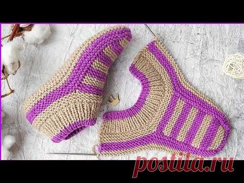 САМАЯ УДАЧНАЯ МОДЕЛЬ СЛЕДКОВ. Домашние следки спицами. Простые тапочки спицами без швов на подошве.