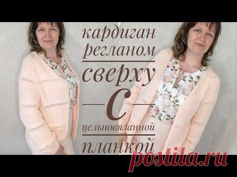Кардиган регланом сверху с цельновязанной планкой. Как я вязала.