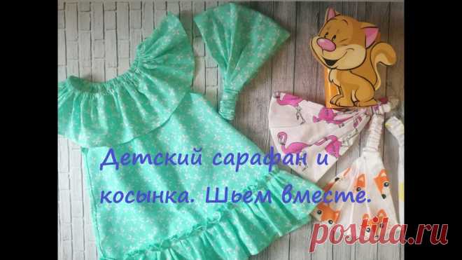 Шьем детский летний комплект- сарафан и косынку. Легко и просто! Внимание!!! Длина резинки для косыночки детской составляет 14 см в длину! Для обхвата головы 45 см и 55 см! А не 7 см как указано в моих расчетах! Мерки дан...
