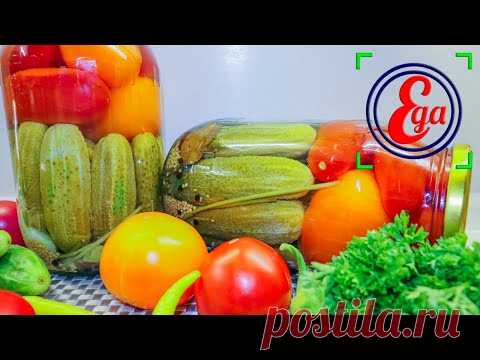 Консервированное ассорти из огурцов и помидоров. Заготовки на зиму