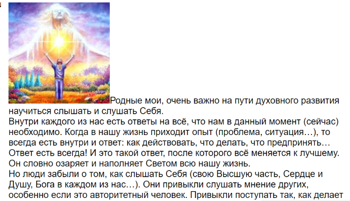 Научиться слышать Себя – СОТВОРЧЕСТВО В СВЕТЕ, пользователь Татьяна Бабаян | Группы Мой Мир