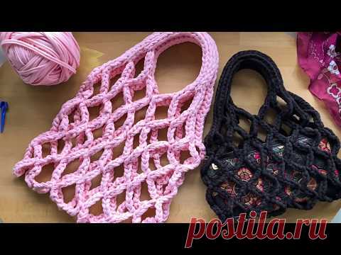 Вяжем стильную сумку авоську крючком из трикотажной пряжи