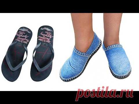 ПРЕВРАТИЛА СТАРЫЕ ШЛЁПАНЦЫ В МОДНУЮ ЛЕТНЮЮ ОБУВЬ!