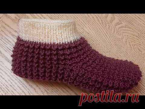 Классные тапочки-следки на двух спицах без швов // patik modelleri