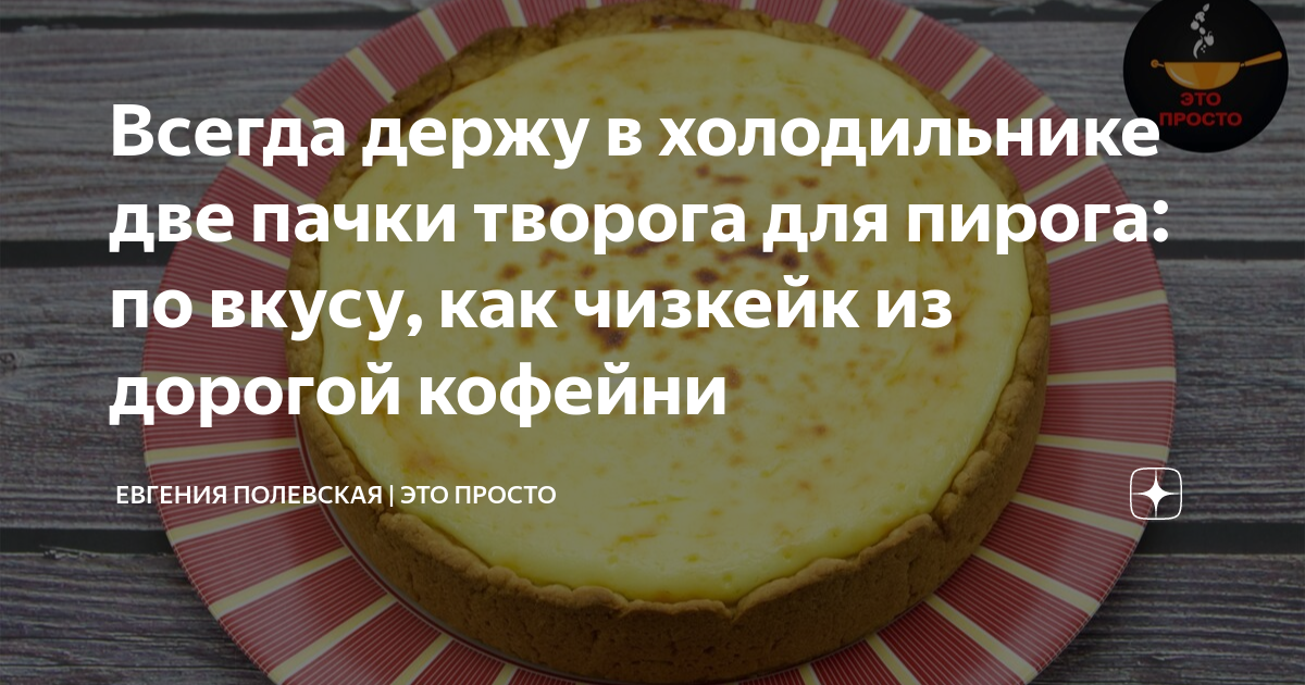 Всегда держу в холодильнике две пачки творога для пирога: по вкусу, как чизкейк из дорогой кофейни Мой папа очень любит творожную выпечку и мама постоянно экспериментирует и готовит совершенно разные блюда. Вот сегодня я предлагаю вам рецепт творожного пирога, который по вкусу, как чизкейк из дорогой кофейни, но готовится проще и дешевле. Нежный, вкусный и просто тает во рту! СПОСОБ ПРИГОТОВЛЕНИЯ: В миску разбиваем 1 яйцо, добавляем щепотку соли, 40 г сахара, перемешиваем ...