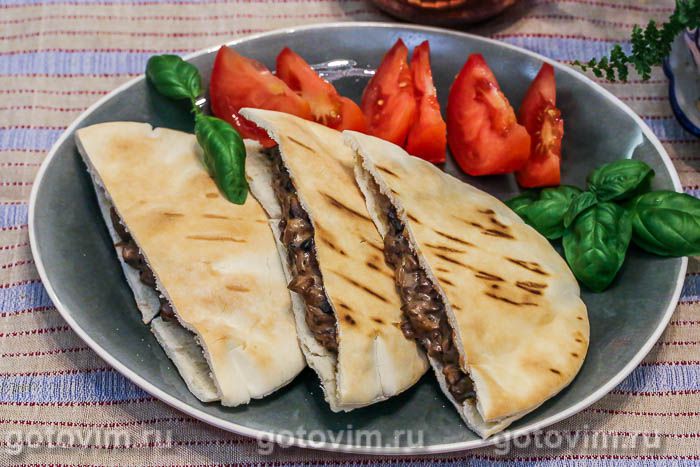 Пита с грибами и сыром. Рецепт с фото Попробуйте приготовить необычную начинку для питы. Как правило, лепешку наполняют ломтиками запеченного или жареного мяса со свежими овощами и салатом. А мы приготовили питу с густым грибным соусом и сыром. Получилось вкусно, даже чем-то напоминает пирог. По желанию подавайте такую питу с овощным салатом.