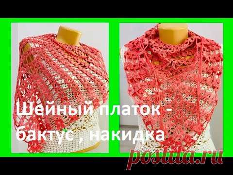 Шейный ПЛАТОК , Накидка , ШАЛЬ, Бактус , Вязание КРЮЧКОМ по схеме , crochet shawl ( Шаль № 377)