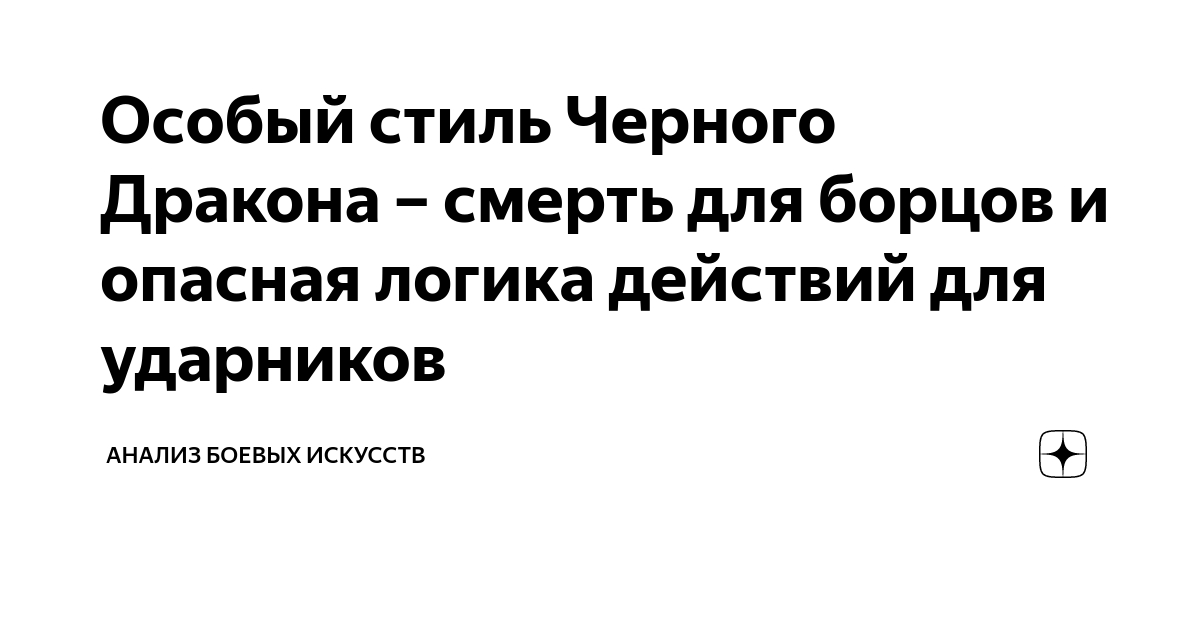 Особый стиль Черного Дракона – смерть для борцов и опасная логика действий для ударников У китайцев этих драконов пруд пруди. Наверняка, и стилей Черного дракона штук десять. Но я буду говорить о несколько ином стиле. Найти его в китайском ворохе сотен школ и стилей практически невозможно, хотя и ничего сложно в нем нет. Прежде всего, стиль Черного Дракона – это настоящее кунг фу, как оно есть, а не чуань фа и не у-шу. То есть речь идет о высоком и серьезном мастерстве. Че...