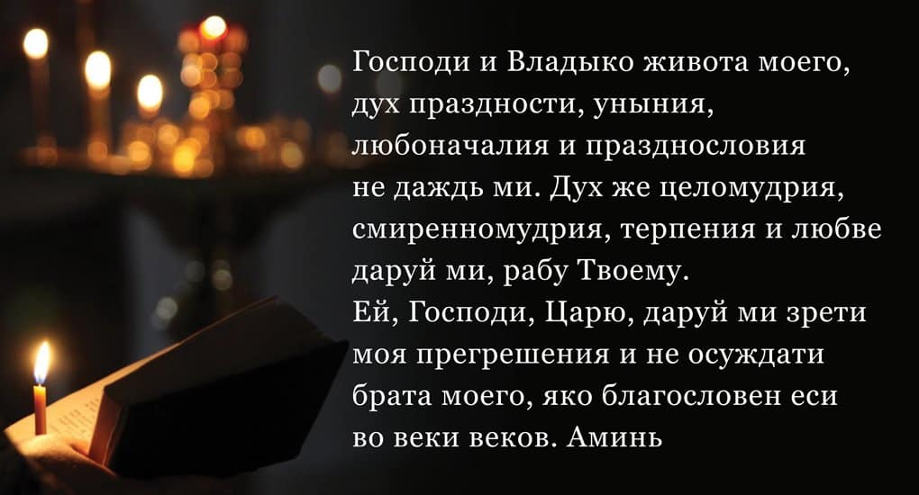 Молитва Ефрема Сирина, молитва покаяния, составленная почитаемым сирийцем Ефремом в четвертом веке, сопровождает земную службу и читается в течение семи дней