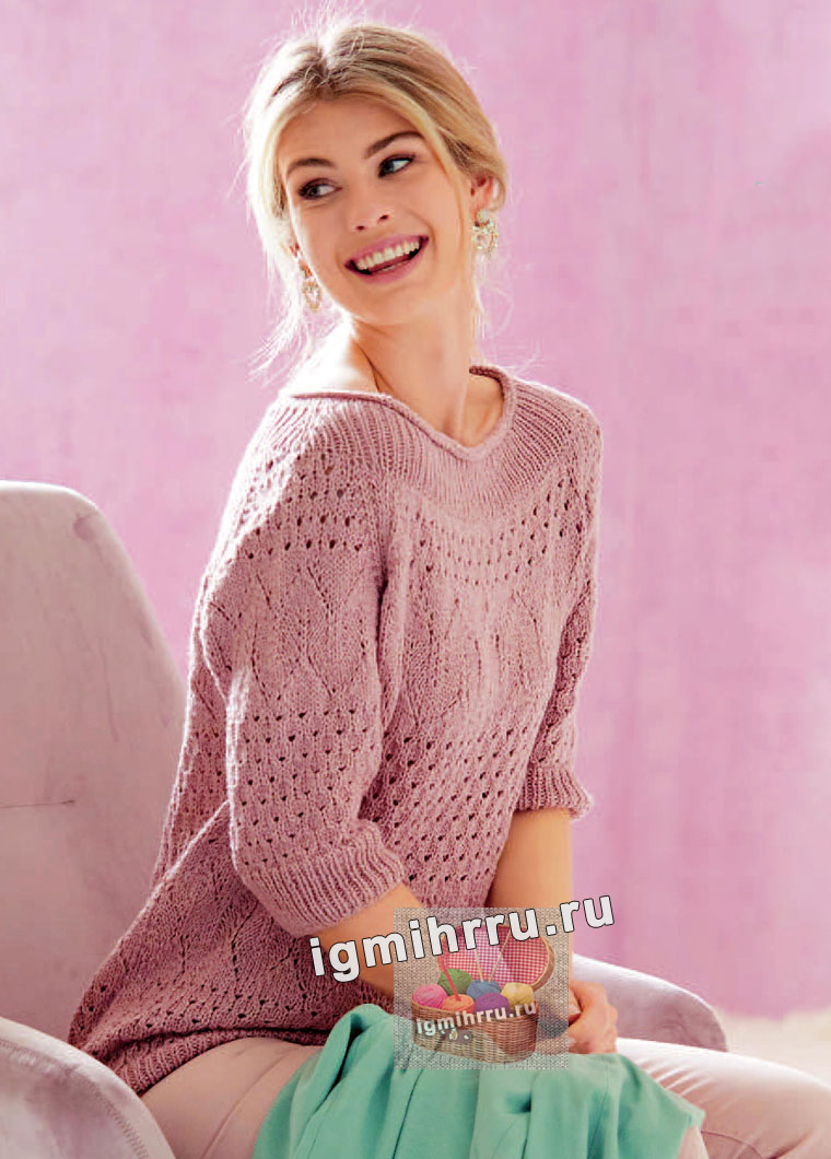 ПУЛОВЕР-РЕГЛАН С АЖУРНЫМИ УЗОРАМИ