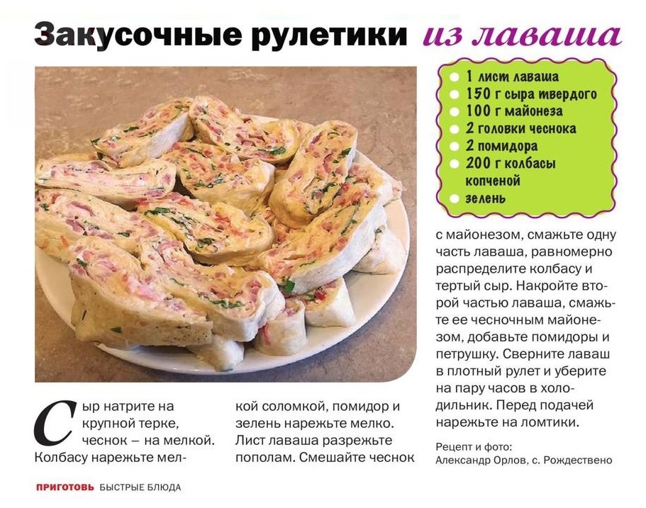 Закусочные рулетики из лаваша