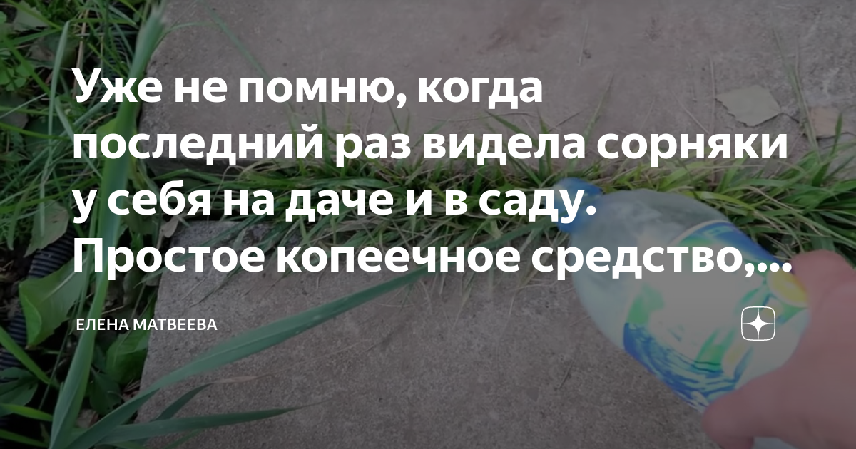 Уже не помню, когда последний раз видела сорняки у себя на даче и в саду. Простое копеечное средство, которое избавит от них раз и навсегда Всем привет, дорогие друзья! Даже если в вашем дворе проложена плитка, то можно столкнуться с проблемой появления травы. Она может появиться между плитками. И убирать её проблематично. Хочу рассказать об одной смеси, которая позволит без труда убрать эти сорняки. Для приготовления средства понадобится: Уксусная эссенция 70-процентная...