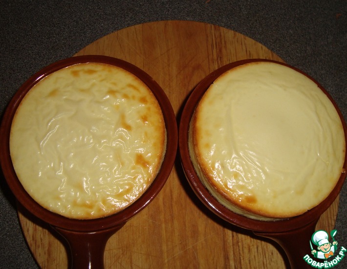 - Это все, что нам понадобится для запеканки, никакой манки и муки! Все ингредиенты смешиваем в блендере. Берем формочки для запекания (я беру кокотницы для жульена, в них запеканка получается самая вкусная), смазываем сливочным масло и выливаем туда нашу смесь творожную. Ставим в духовку, разогретую до 200*С, на 35-40 минут. Вот такая запеканочка у нас получается - сочная, нежная. Ребенок её ест с удовольствием просто так)))