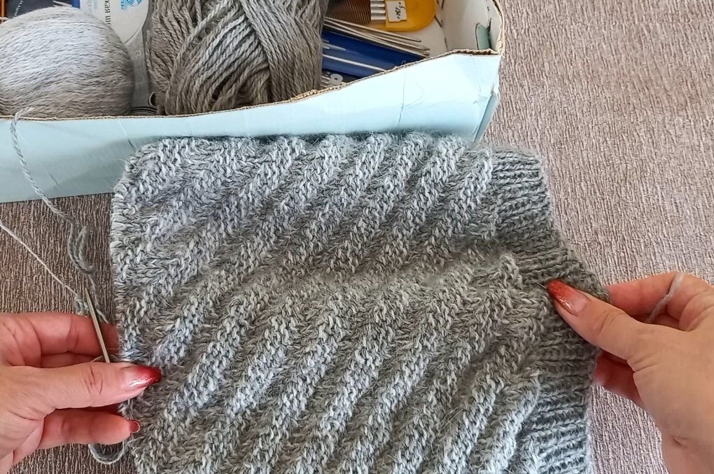 Вяжу шапку диагональным узором из "Пуха норки" и "Секрета успеха" | Тепло о вязании Пульс Mail.ru Очень простой узор для шапки на основе резинки 4 х 4 (4 лиц., 4 изн.). Петли смещаются на одну в каждом ряду, образуя диагональные дорожки из изнаночных петель на фоне лицевой глади.