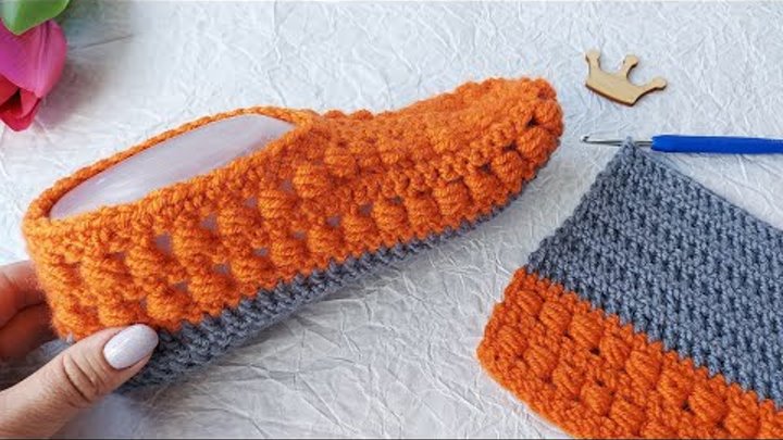 Домашние следки крючком. Простые тапочки крючком без швов на подошве.