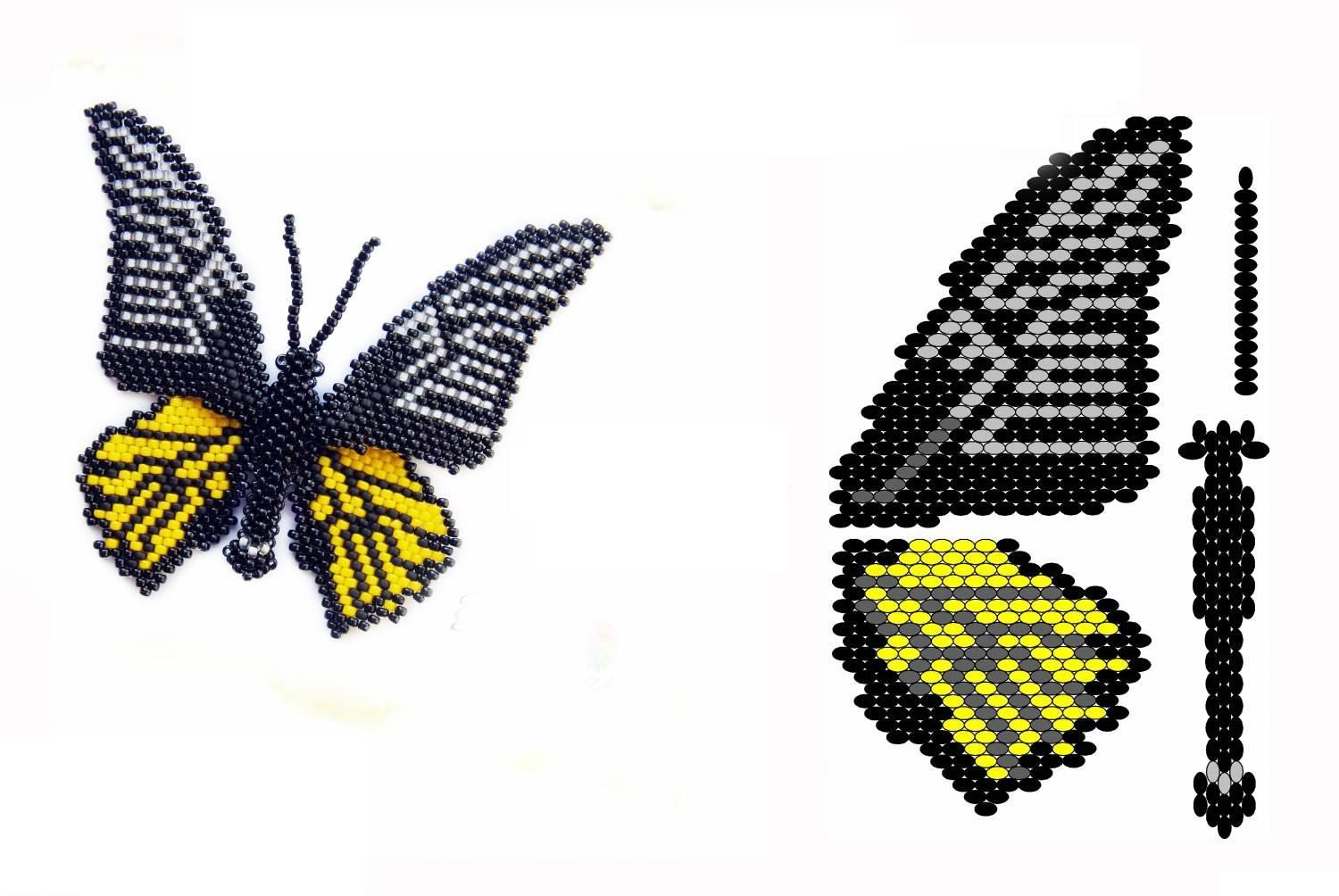 Бабочка из бисера кирпичным плетением Всё из бисера и о бисере плетём и вышиваем. Учимся плести и вышивать бисером, уроки и техники бисероплетения, мастер классы, схемы для вышивания бисером