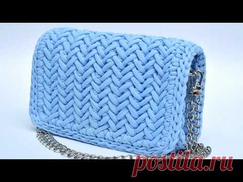 Crocheting a handbag with herringbone pattern Сумочка кроссбоди крючком с узором Ёлочка