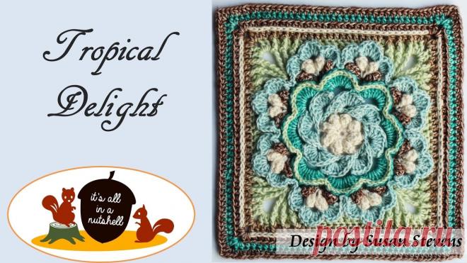 Tropical Delight - Crochet Square - RIGHT HANDED Tropical Delight written pattern: http://www.mellieblossom.com/free-tropical-delight-crochet-pattern/Yarn kits Nuts About Squares:https://itsallinanutshell.s...