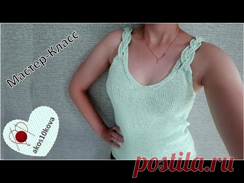Летняя майка с лямками-косами. Мастер-Класс. Вязание спицами