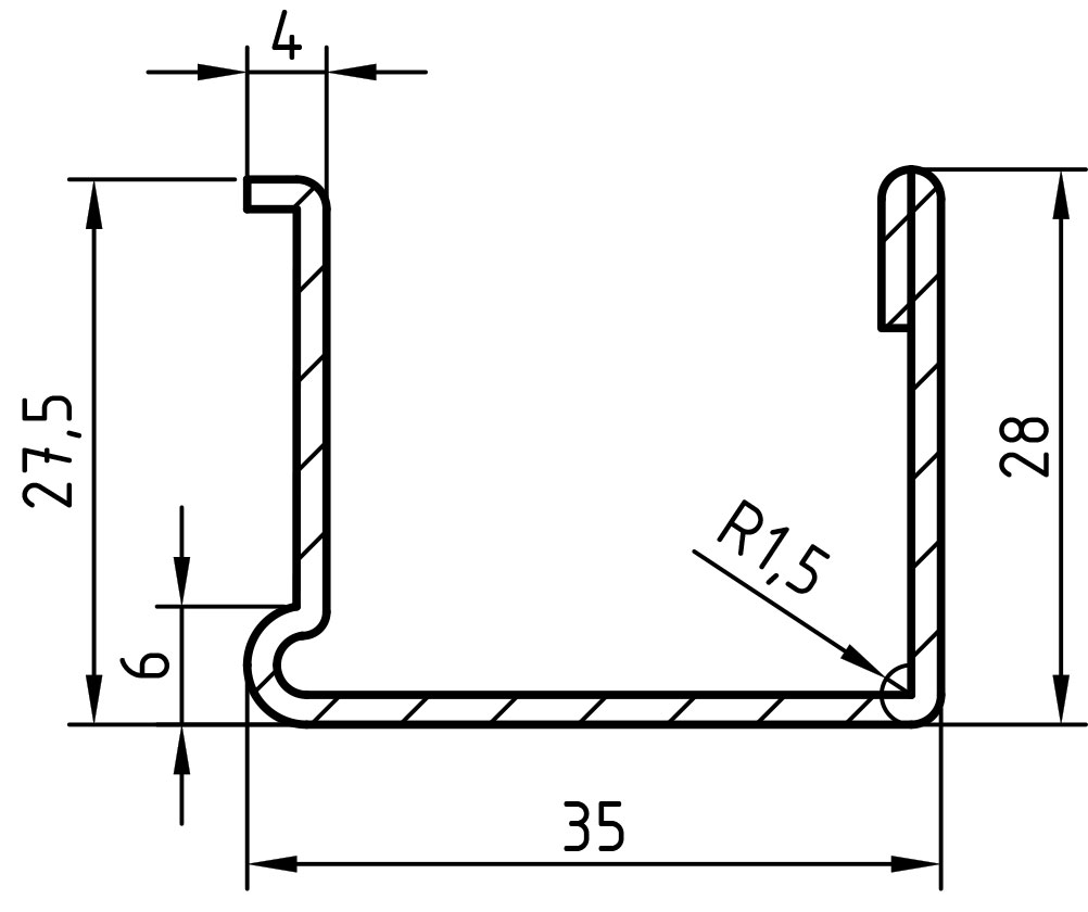 Армирующий профиль 35х28 с усилением (Rehau 506) – Оконный профиль Рехау
