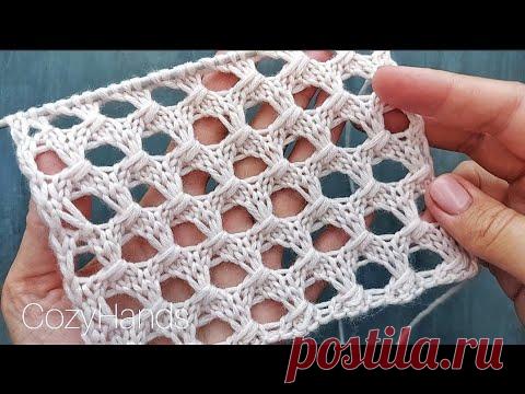 Оригинальная крупная сетка спицами 🔥💕 Такой узор вы ещё не видели