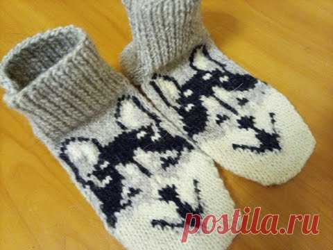 Детские жаккардовые носки "Хаски" на двух спицах. Схема.