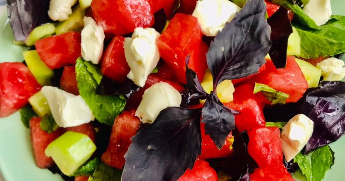 Салат из арбуза - пошаговый рецепт с фото. Автор рецепта Sayyora Alimova ✈ . Салат из арбуза - пошаговый рецепт с фото. #студия Очень приятный салат для перекуса или завтрака. Здесь важную роль играет заправка. Если арбуз очень сладкий, можно добавить меньше мёда. Можно ещё добавить орехи по желанию. Но мне нравится без орехов. Попробуйте, это очень вкусно 😋.