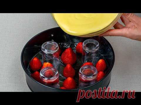 Гениальный трюк со стаканами! Торт без выпечки, с клубникой