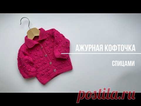 #вязание,#спицами Детская кофточка с ажурным рисунком спицами.