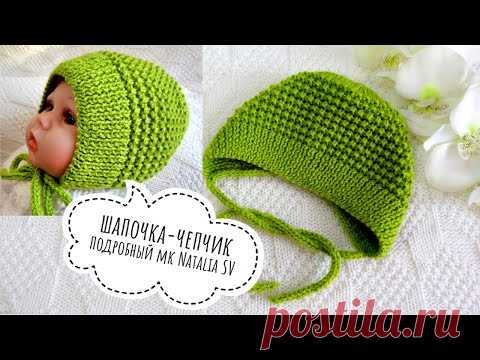 Шапочка-чепчик спицами для малыша👶 Подробный мастер-класс