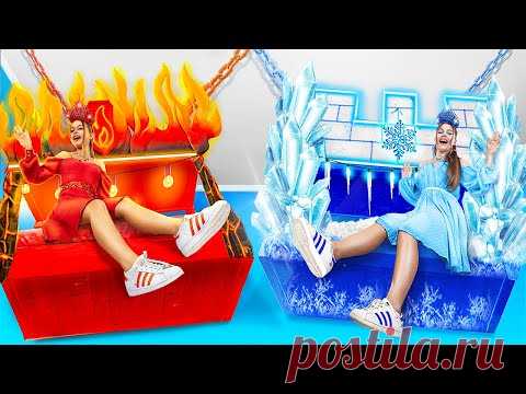 Мы построили подвесные секретные комнаты! Холодная vs горячая близняшка