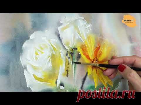 Приглашаю на авторский акварельный курс "Цветы и стеклянные предметы"