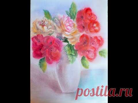 Акварельный натюрморт с цветами/ Рисуем картину легко и просто.
