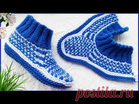 Красивые ТАПОЧКИ СЛЕДКИ на 2-х спицах. Без швов на подошве