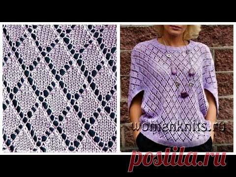 ТОП С АЖУРНЫМИ РОМБАМИ. ажурный узор спицами вязание