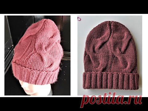 шапка с отворотом спицами