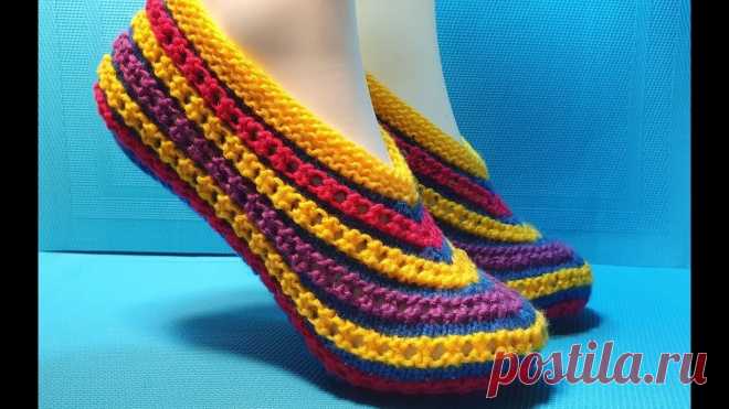 #405. ЯРКИЕ ТАПОЧКИ СПИЦАМИ ИЗ ОСТАТКОВ ПРЯЖИ. ВЯЖУТСЯ ЛЕГКО И БЫСТРО . МАСТЕР КЛАСС