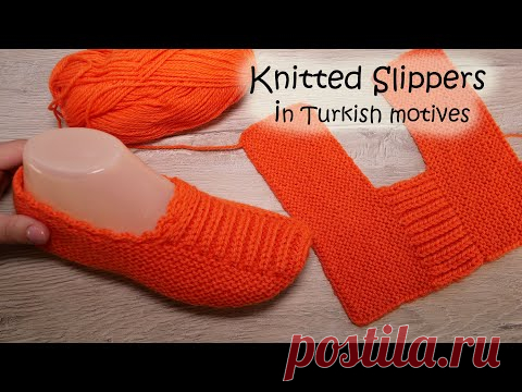 Следки на двух спицах по Турецким мотивам 🇹🇷 Orange knitted Slippers in Turkish motives 🎃