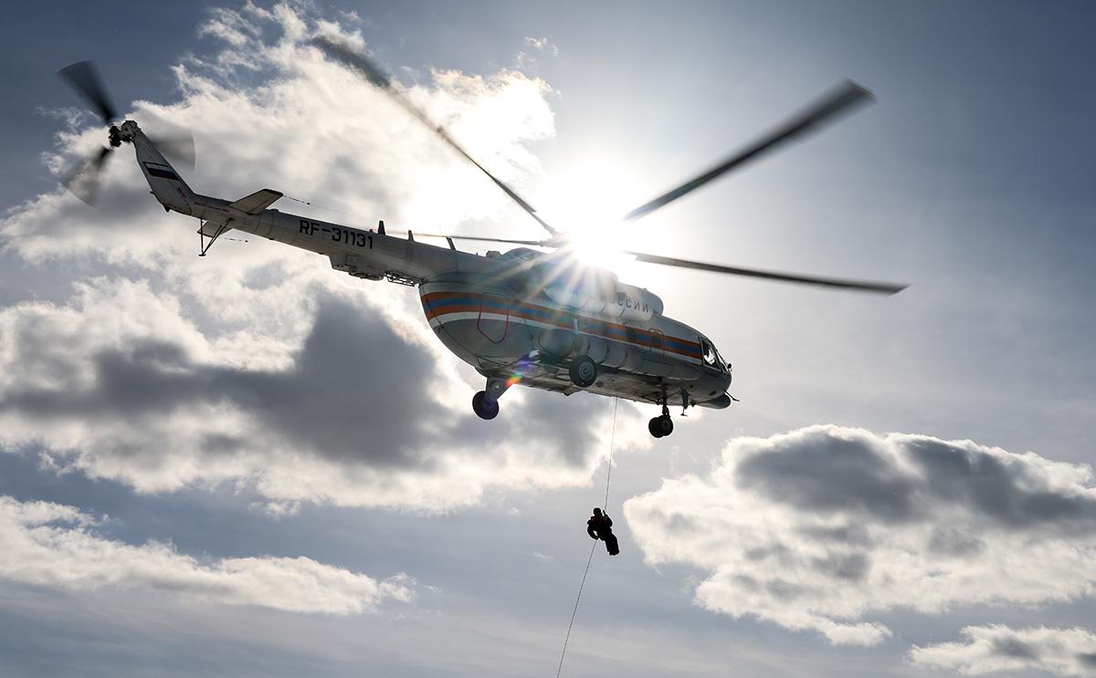 В МЧС назвали число людей на унесенных в море на Сахалине баржах. Спасатели на вертолете Ми-8 приступили к эвакуации экипажей рыболовецких судов, которые сорвало с якоря между Сахалином и материком.