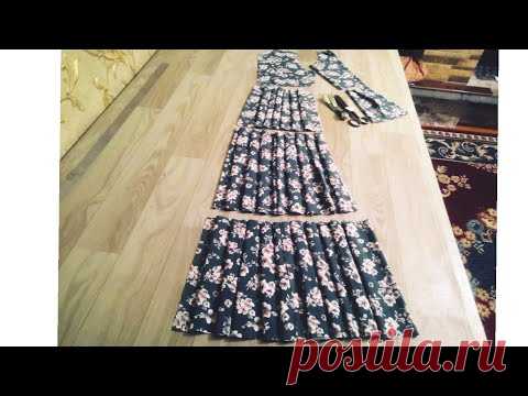 Трёхярусное длинное платье✂️ удобный крой на ткани Уч ярусли кўйлак бичиш энг осон тез бичилиши