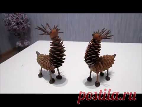 Осенняя поделка из природных материалов в детский сад или школу . Олени из шишек.