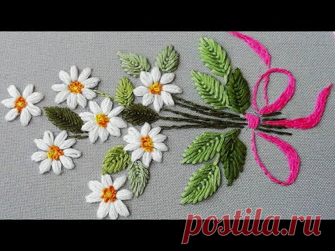Как вышить ромашки 🌼 Легкие стежки 🌼топ вышивка