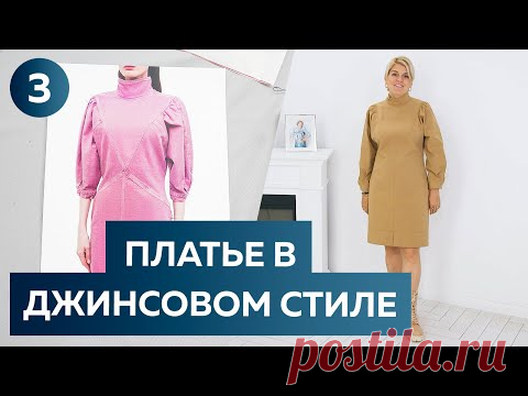 Платье в джинсовом стиле с объёмными рукавами. Платье на осень 2022. Обзор готового изделия.