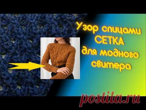 Узор спицами СЕТКА для модного свитера. Алена Никифорова.