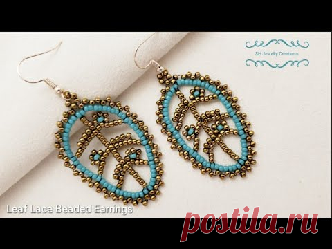 How to make a Leaf Lace Beaded Earrings. Beads jewelry making. Beading tutorials.