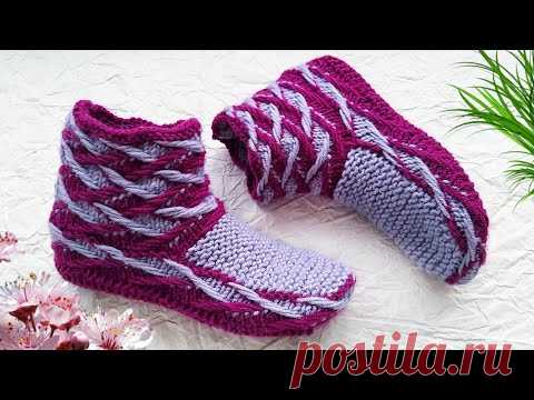 Красивые ТАПОЧКИ СЛЕДКИ на 2-х спицах. Без швов на подошве