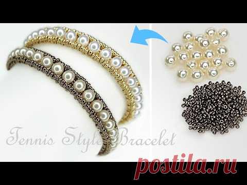 【DIY】Tennis Style Pearl Bracelet Beading Tutorial ビーズとパールのテニス風ブレスレットの作り方 用珍珠和米珠制作名牌感网球风优雅珍珠手链