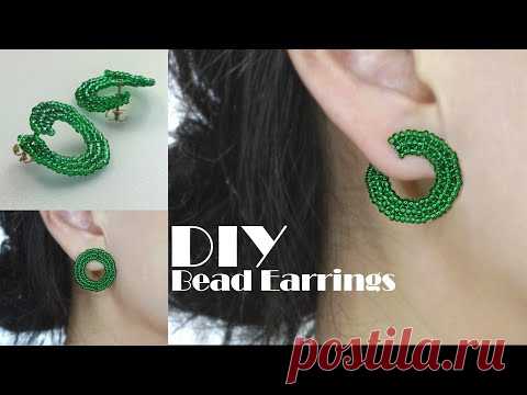 【DIY】How to make a ring-shaped stud bead earrings tutorialビーズステッチDIYつけ方が変えられるビーズのピアス串珠可不同方式佩戴的串珠耳钉教程